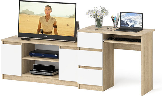 Наименование производителя | Мори Стол компьютерный МС-6 левый + Тумба МТВ1200.1, цвет дуб сонома/белый, ШхГхВ 210,4х50х76,6 см., выдвижные ящики слева, НЕ универсальная сборка |