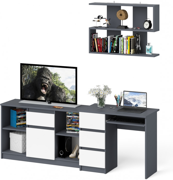 Наименование производителя | Мори Стол компьютерный МС-6 левый + Тумба МТВ1204.1 + Полка 900, цвет графит/белый, ШхГхВ 210,4х50х209,6 см., НЕ универсальная сборка |