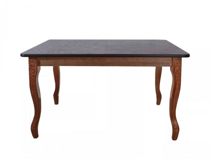 Обеденный стол СО-6 орех - прекрасный образец утонченной мебели для интерьера столовой или гостиной комнаты. Модель оснащена синхронным раздвижным механизмом на металлических полозьях. Стол выполнен в ярком стиле модерн с использованием первоклассных материалов и фурнитуры. Столешница в раздвинутом состоянии 1800 мм способна обслужить до 10 человек. Ножки и подстолье с резными элементами.