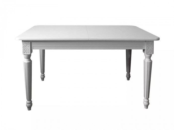 Обеденный стол СО-7 белый - прекрасный образец утонченной мебели для интерьера столовой или гостиной комнаты. Модель оснащена синхронным раздвижным механизмом на металлических полозьях. Стол выполнен в ярком стиле модерн с использованием первоклассных материалов и фурнитуры. Столешница в раздвинутом состоянии 1800 мм способна обслужить до 10 человек. Особый внешний вид столу придают резные опоры.